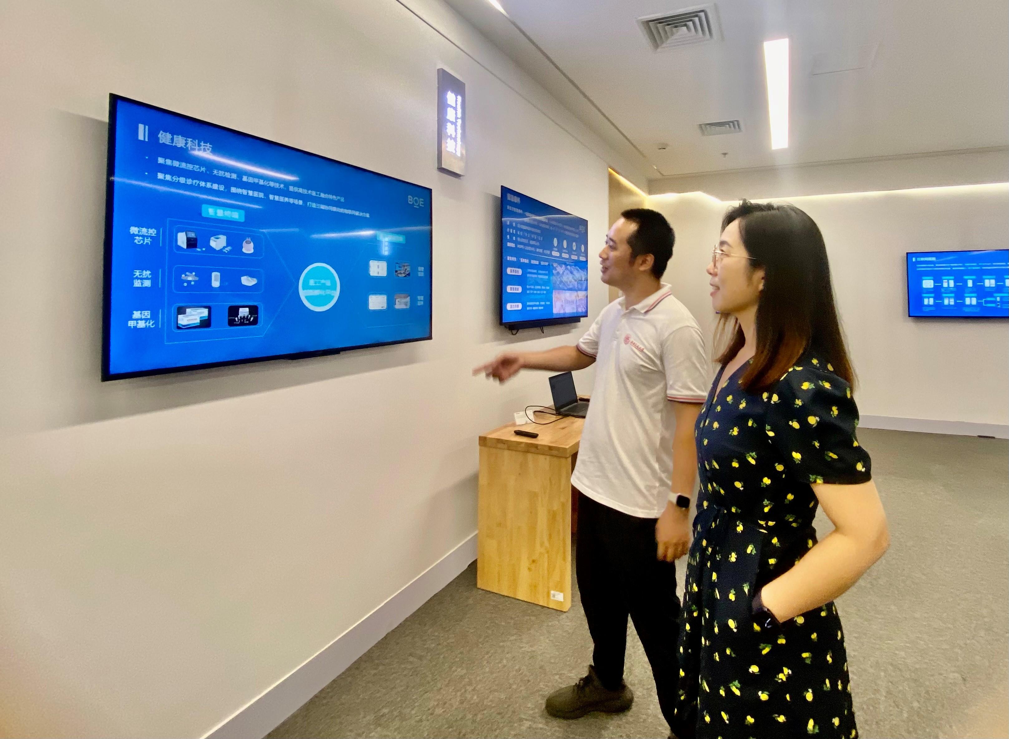 学工组一行参观了成都京东方医院的行政大楼、智慧医疗系统、智慧病房以及成都天府生物城展厅,工作人员对其智慧医疗、医疗设备、医疗流程等展开了介绍。会后,相关人员对京东方智慧医工人才体系建设与培养进行了讲解,并进行了进2小时的校企洽谈,主要包括京东方医院整体介绍、京东方智慧医工校园品牌活动分享、优秀校友分享以及友好交流等。