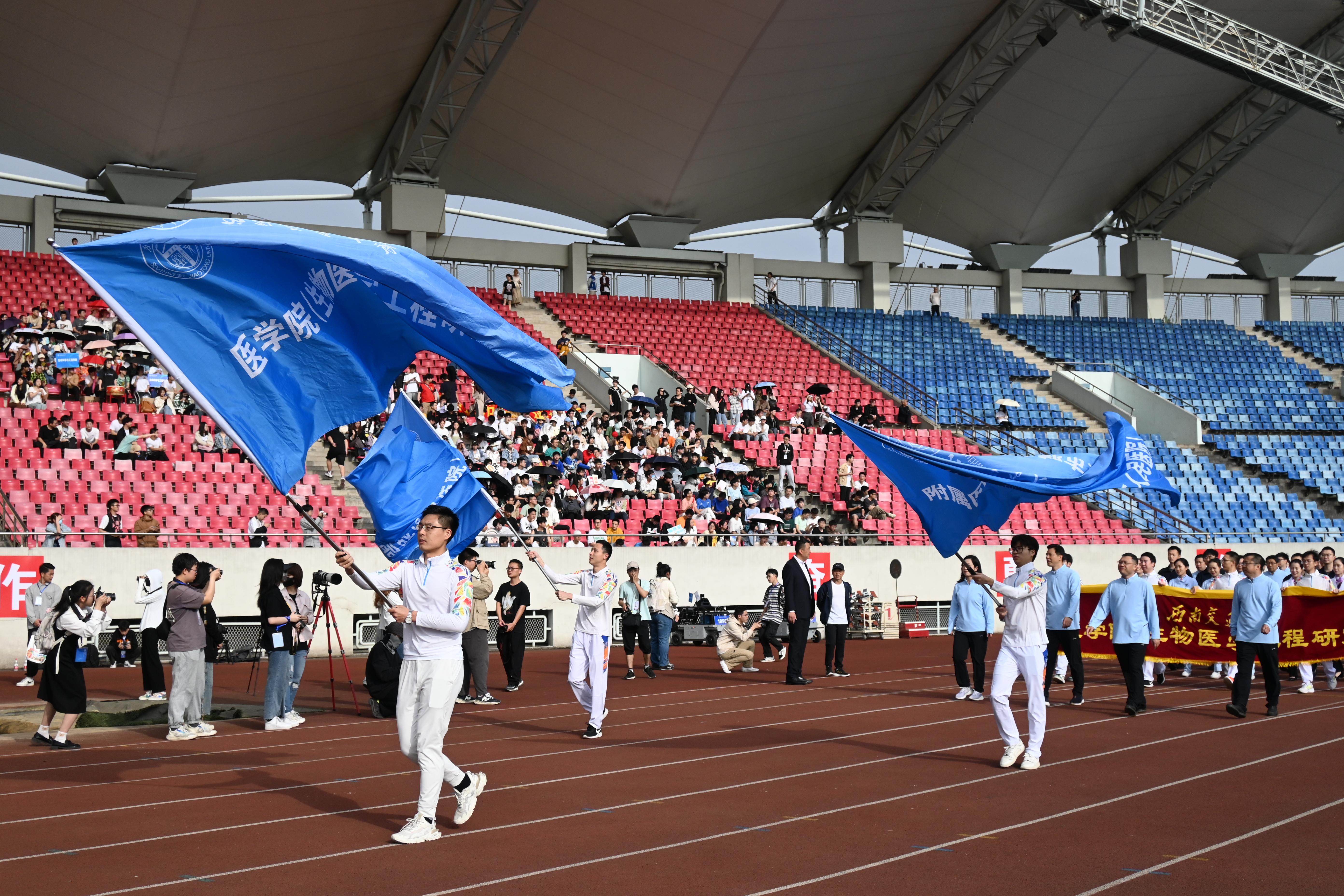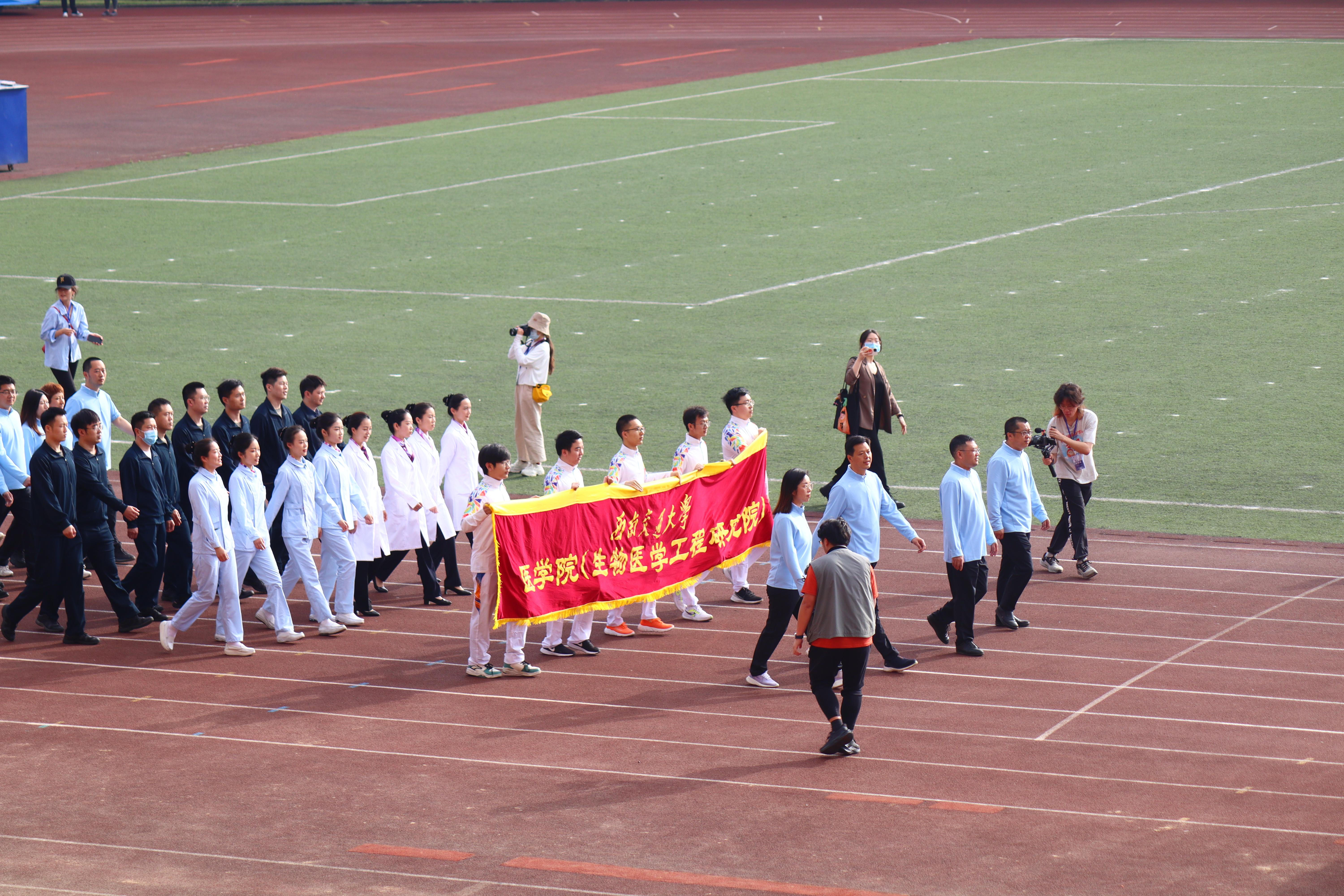 第122届运动会开幕式于犀浦校区北区体育场隆重开幕。学院和附属医院成都市第三人民医院、西部战区总医院师生组成队伍参加了此次运动会。
