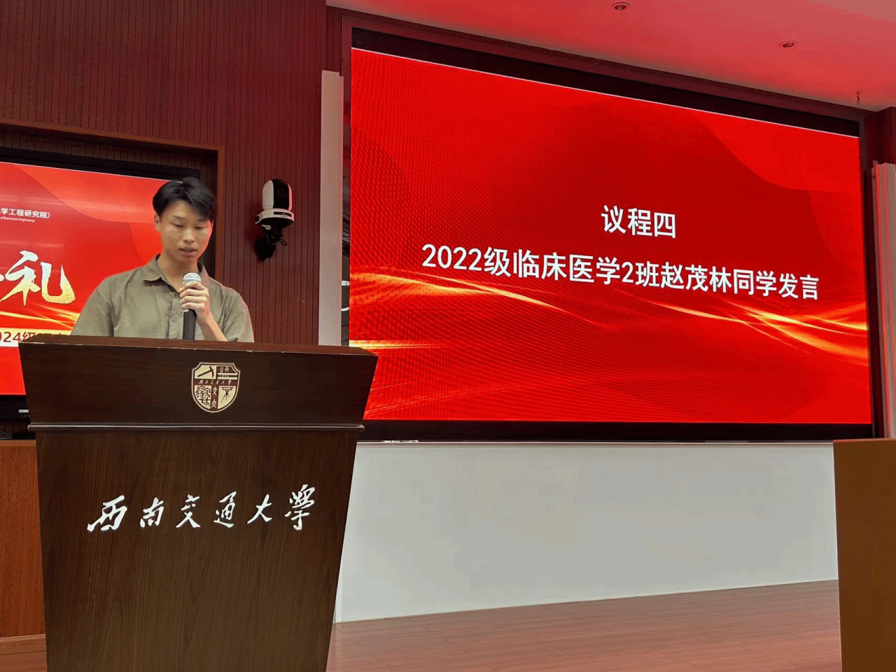 随后,2022级临床医学2班的赵茂林同学作为在校生代表发言。他分享了自己在91制片厂