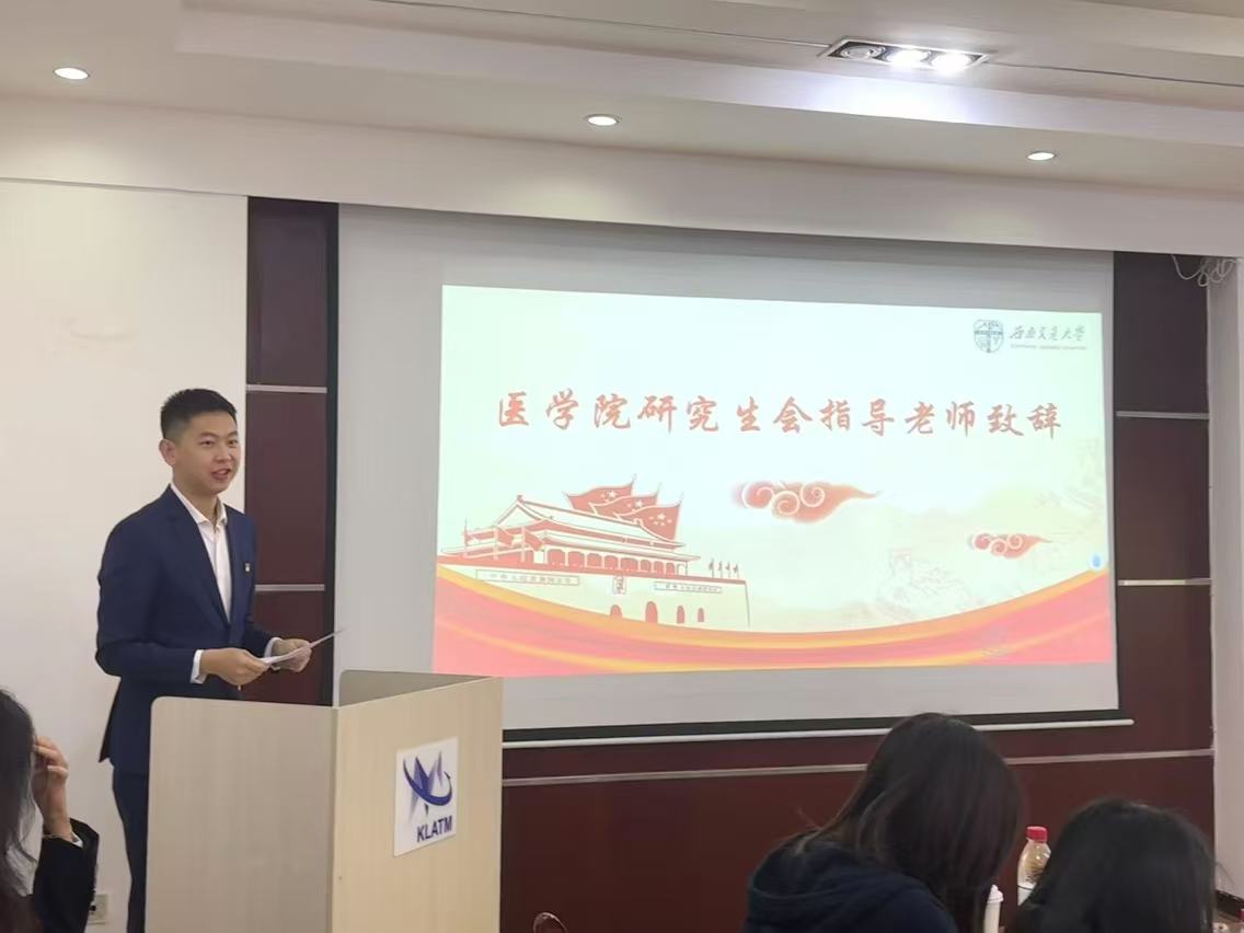 研究生会指导老师韩鹏飞首先对大会的召开表示祝贺,并对长期以来支持关心研究生工作的领导、老师和代表表示衷心的感谢。他强调研究生会在引领学生思想、服务青年成长和维护学生权益方面至关重要。与此同时,韩鹏飞老师向与会代表提出了三点希望:一是继续加强青年学生的思想引领,深入学习新思想、新理念。二是以改革创新精神提升服务水平,切实关注学生需求。三是加强团学干部队伍建设,培养高素质的学生组织。最后,他鼓励代表们以大会为契机,携手推动91制片厂
