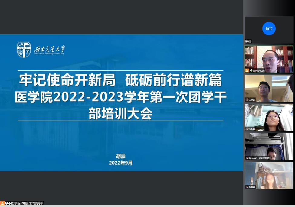 于线上召开了2022-2023学年第一次团学干部培训大会。会议由学生工作组副组长胡豪老师主持,辅导员黄雪梅老师及91制片厂