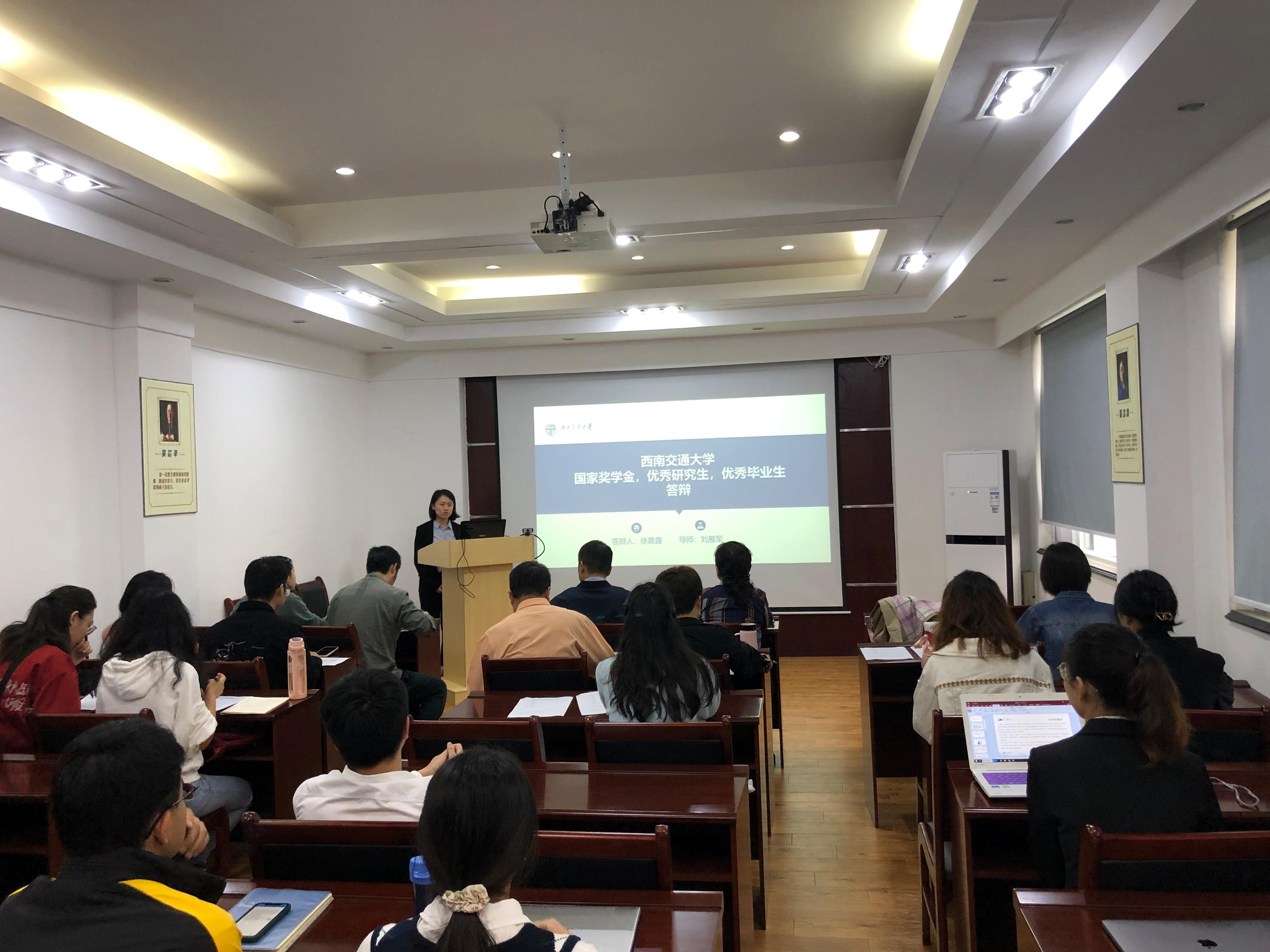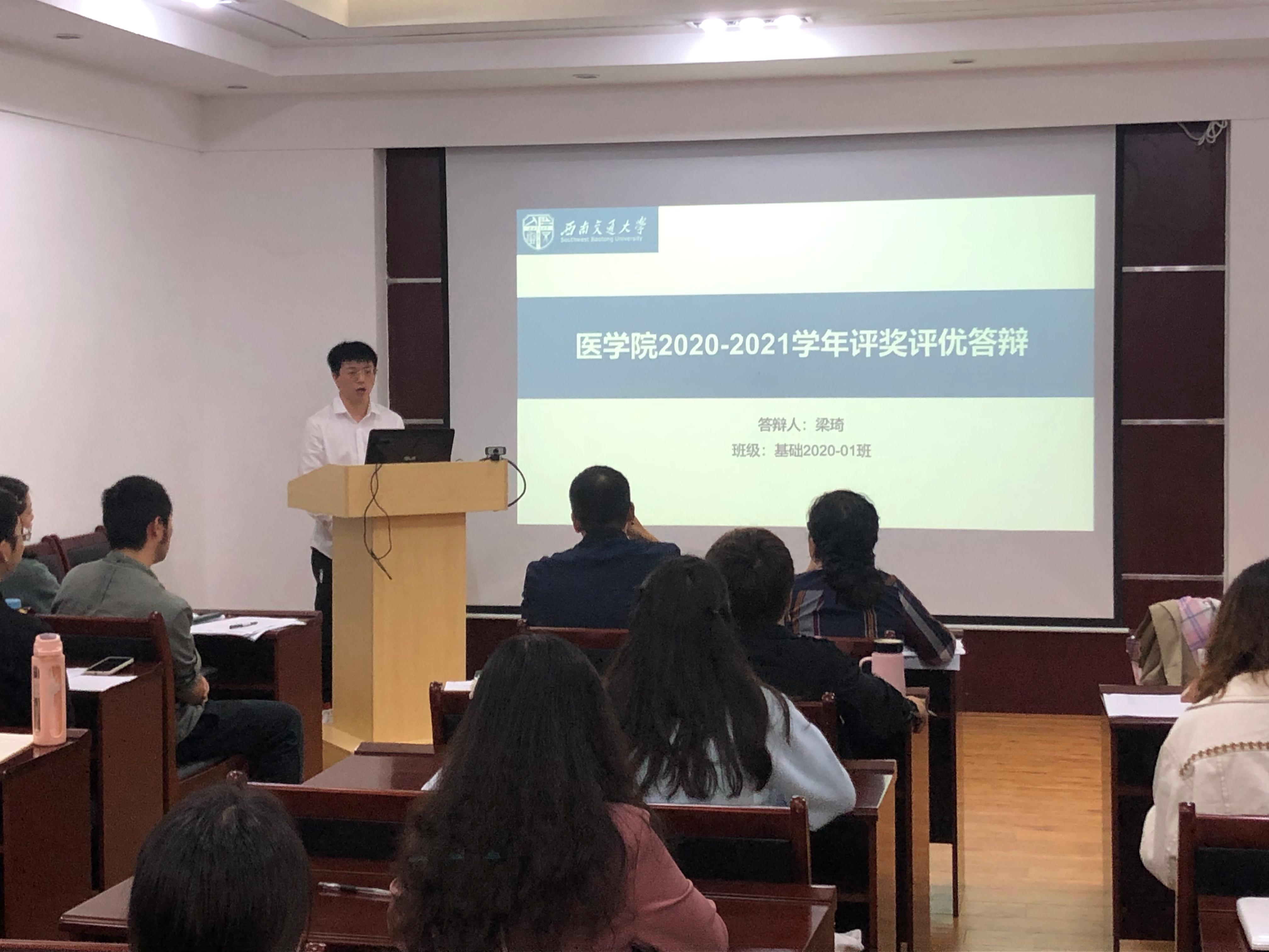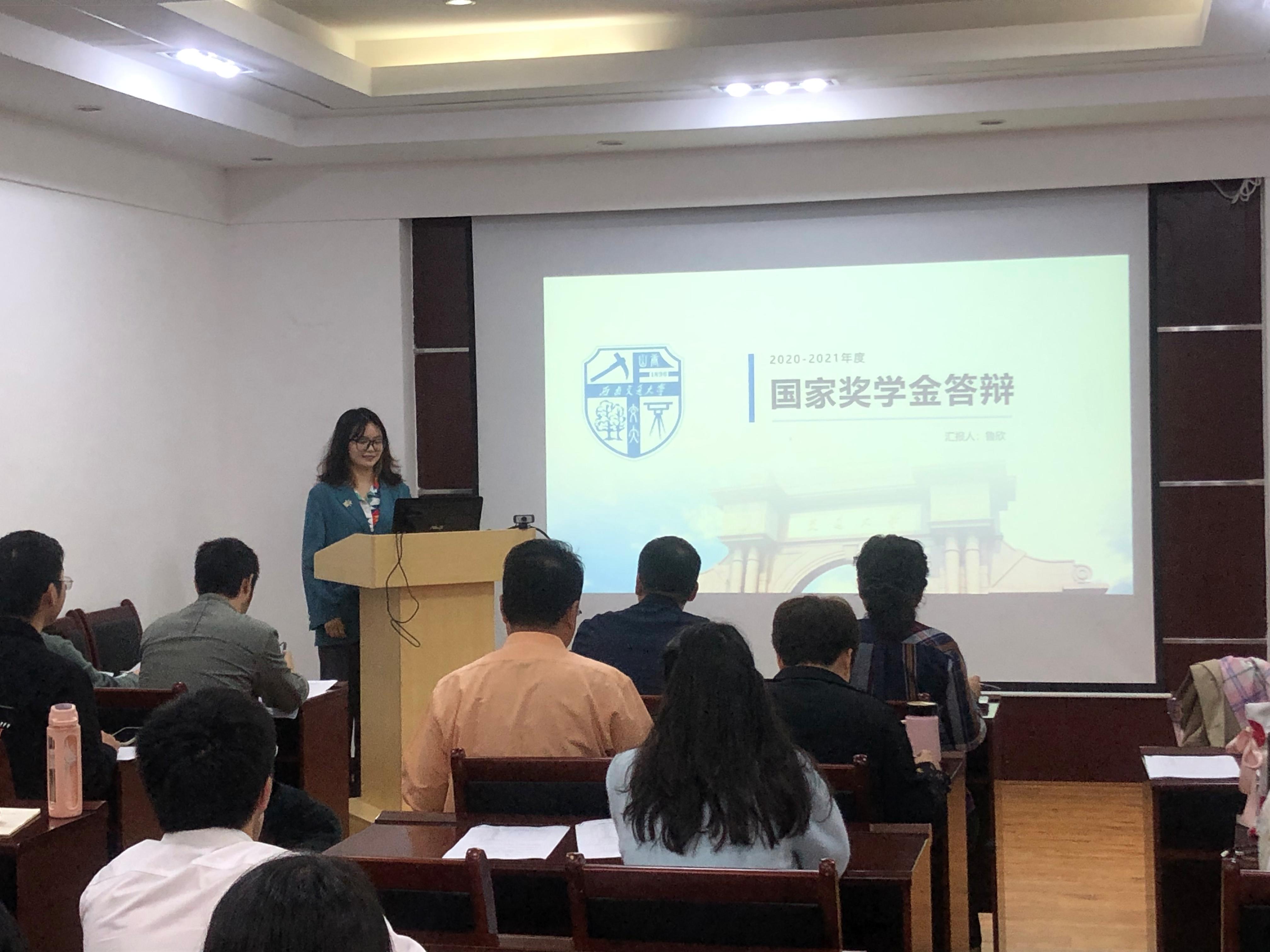 答辩开始,各位学生依据抽签顺序依次上台进行答辩。本次答辩过程分为现场陈述和评委提问两个部分,学生需在5分钟内完成个人展示,同学们从个人简介、思想觉悟、专业学习、学生工作、日常表现、获奖情况等方面作了全面而精炼的展示,评委老师根据展示内容科研情况进行评分。