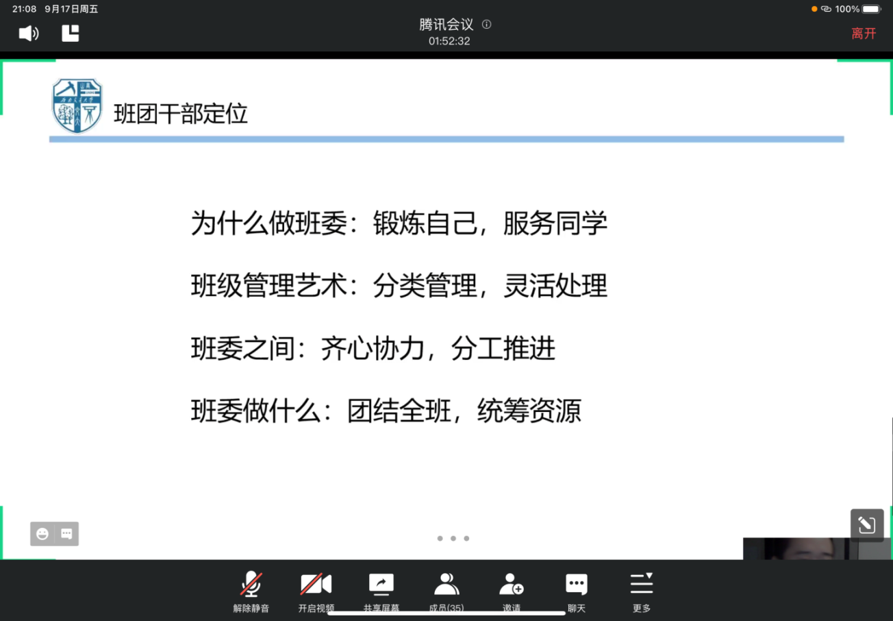 2021级新生入学教育之班团干部培训通过线上讲座方式开展,讲座由91制片厂
