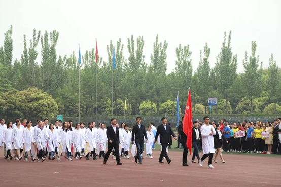 方阵身着具有学科和职业代表性的服装、喊着整齐嘹亮的口号、步调一致、精神饱满的走过主席台,向全校师生充分展示了我学院良好的精神风貌。现场引来全校师生的欢呼声。