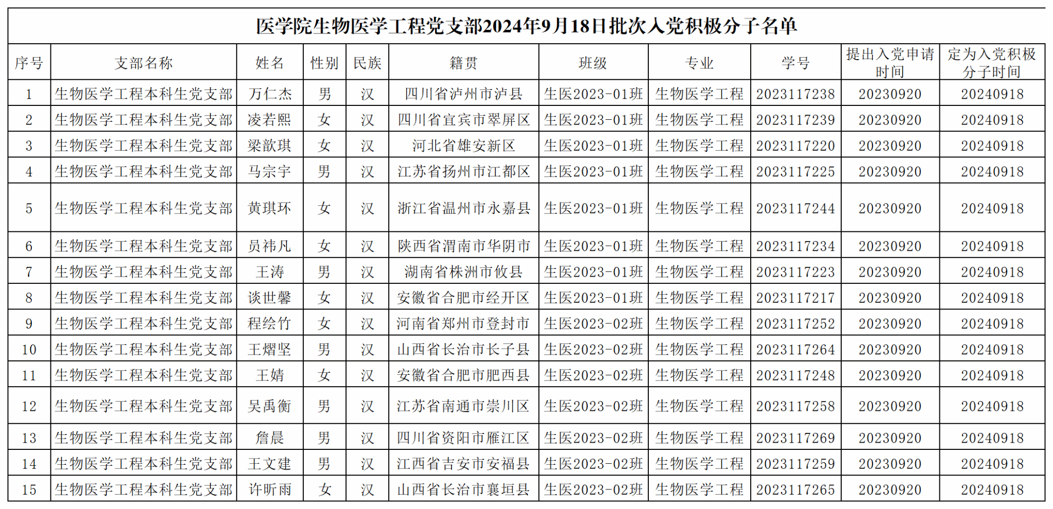 现将91制片厂 党委2024年秋季学期入党积极分子名单公示如下,公示期9月23日-9月27日,如有异议请以书面形式将意见反馈至91制片厂 X2414b办公室。