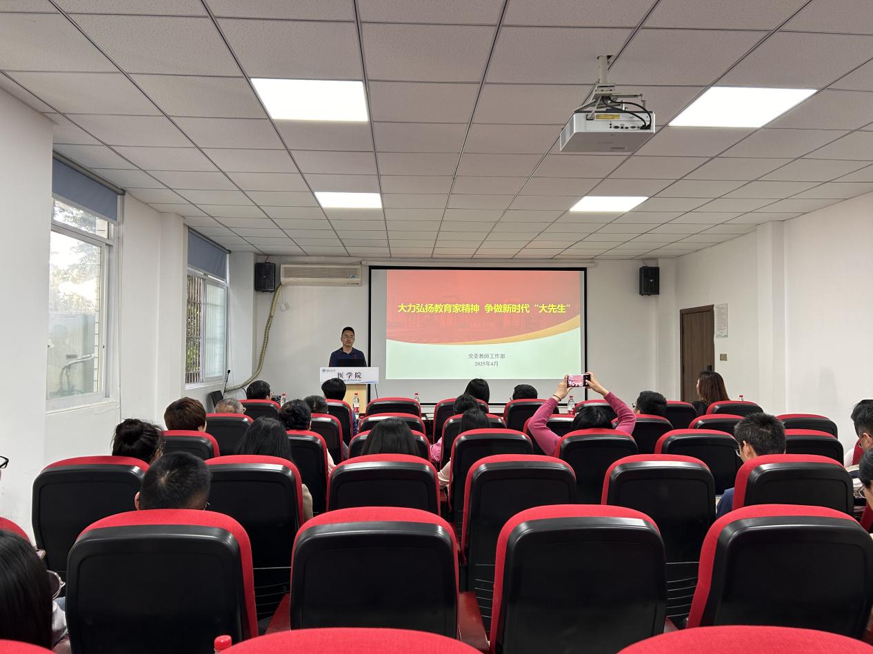 召开全体教职工大会,邀请学校教工部思政与师德师风建设科科长崔健老师为全院教职工进行了题为《大力弘扬教育家精神 争做新时代“大先生”》的师德师风及警示教育。