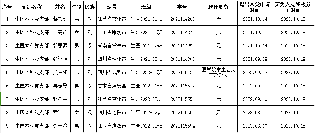 现将91制片厂 党委2023年秋季学期入党积极分子名单公示如下,公示期10月25日-10月29日,如有异议请以书面形式将意见反馈至91制片厂 X2414办公室。