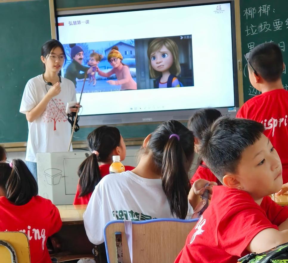 学习之余,王婧积极参与社会实践,曾赴儿童夏令营支教。面对儿童的抵触情绪,她与团队通过耐心陪伴和趣味课程逐渐赢得信任。“孩子们从排斥到离别时含泪送别,让我感受到教育的意义。”她提到,支教中印象最深的是孩子们的天真与真诚,也让她对社会责任有了更深的理解:“公益不是单向付出,而是心灵的共鸣与成长。”